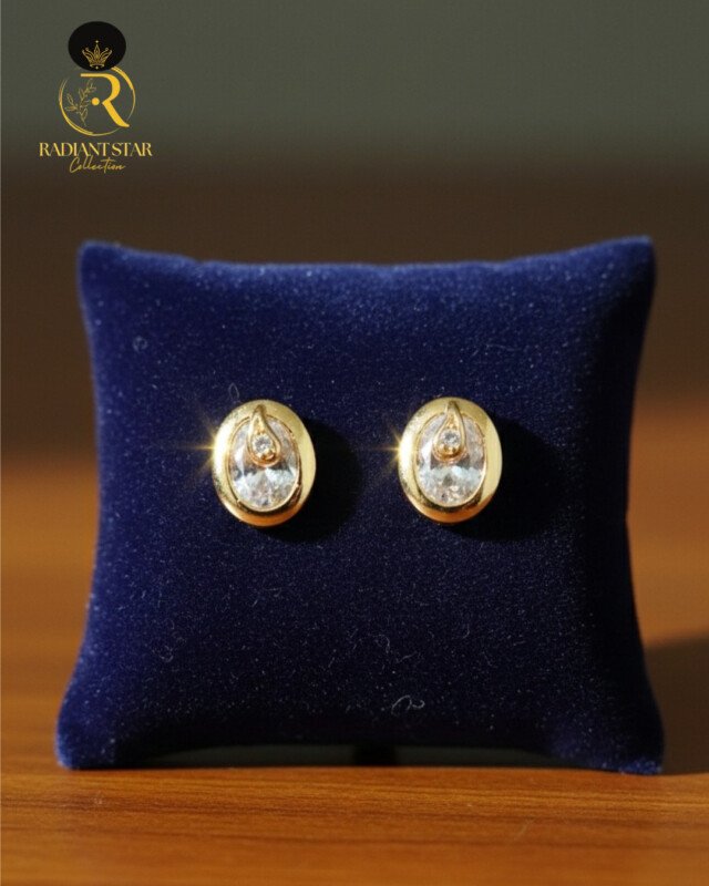 These exquisite gold-toned stud earrings feature a brilliant, clear central crystal, beautifully framed by a polished gold setting.